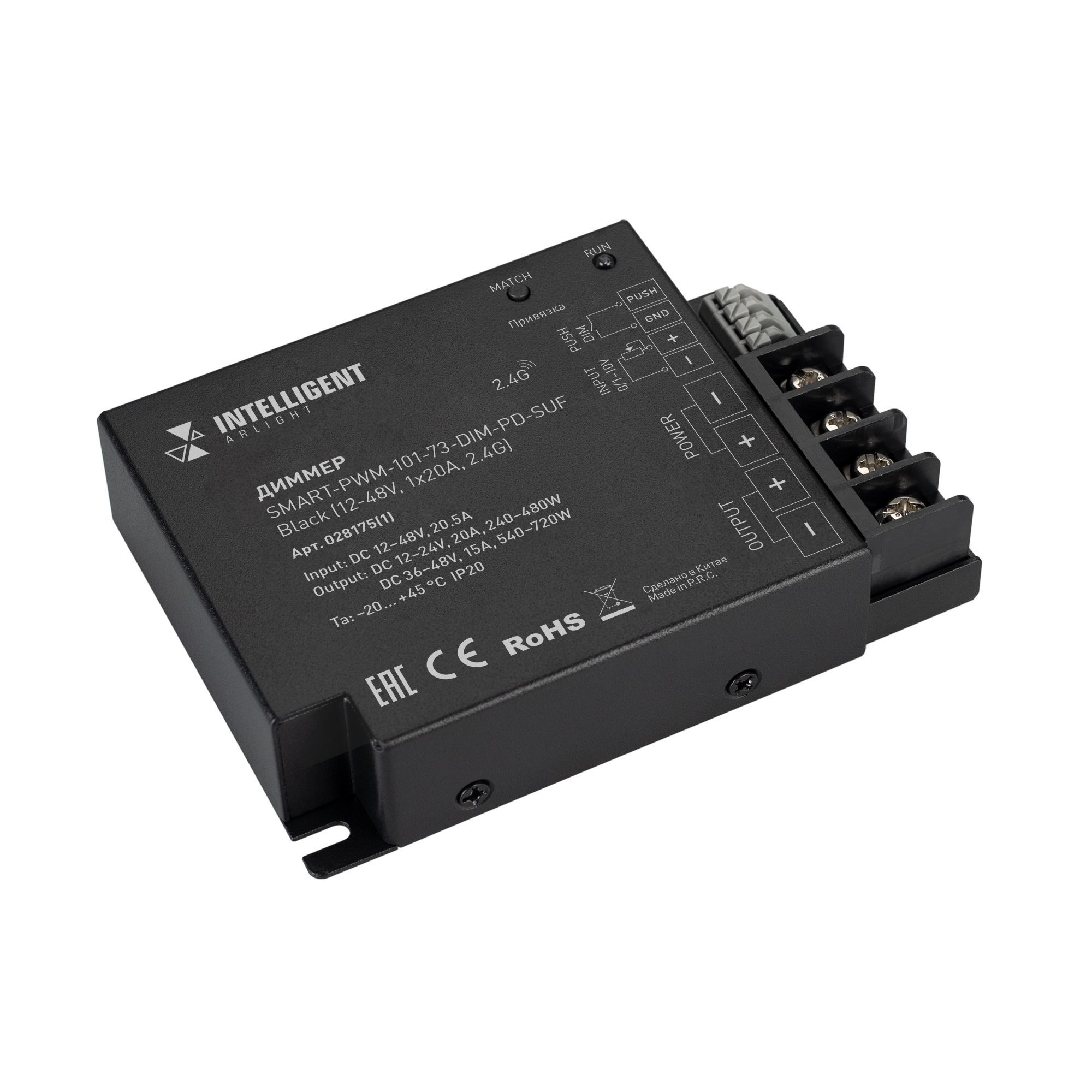 INTELLIGENT ARLIGHT Диммер SMART-PWM-101-73-DIM-PD-SUF Black (12-48V, 1x20A, 2.4G) (IARL, IP20 Металл, 5 лет) 028175(1) в Брянске