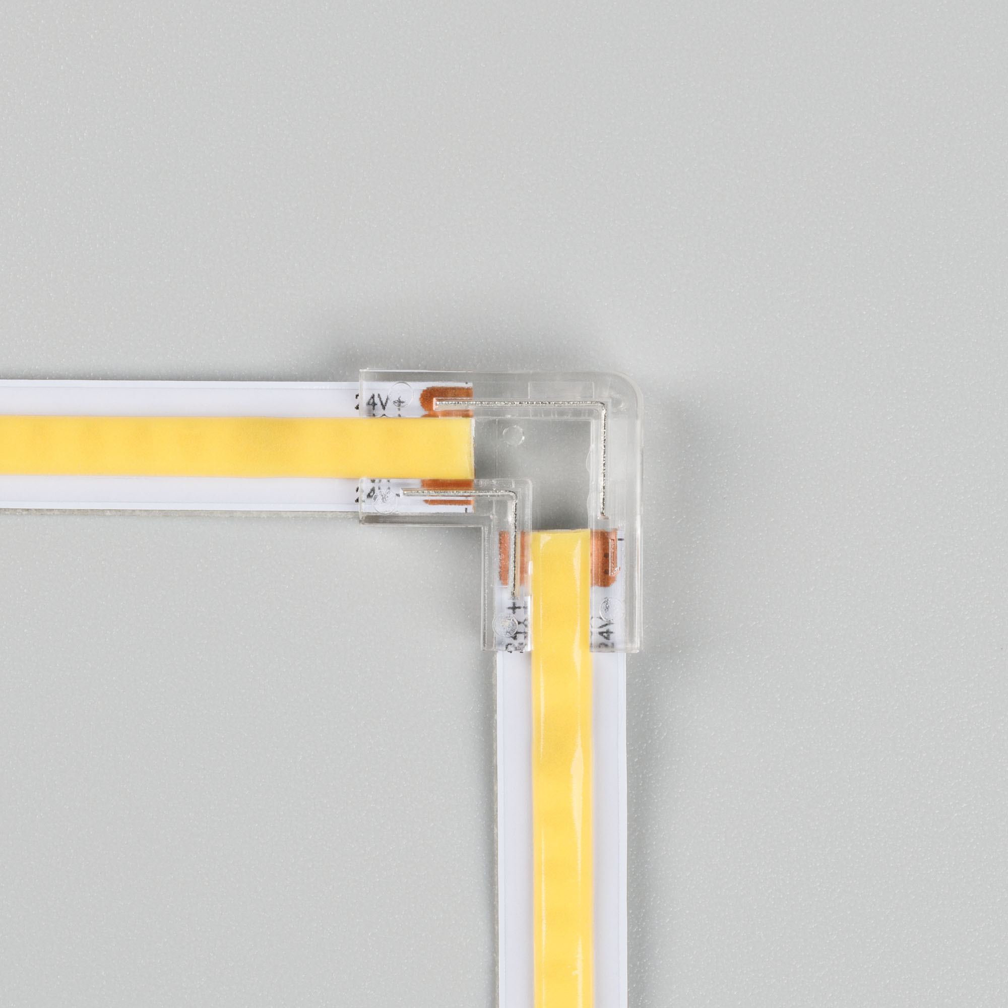 Угловой коннектор STS для соединения двух отрезков одноцветных лент COB шириной 8 мм. Материал - прозрачный пластик. Максимальный допустимый ток 3 А, максимальное напряжение 24 В. Цена за 1 шт. Пакет 10 шт.