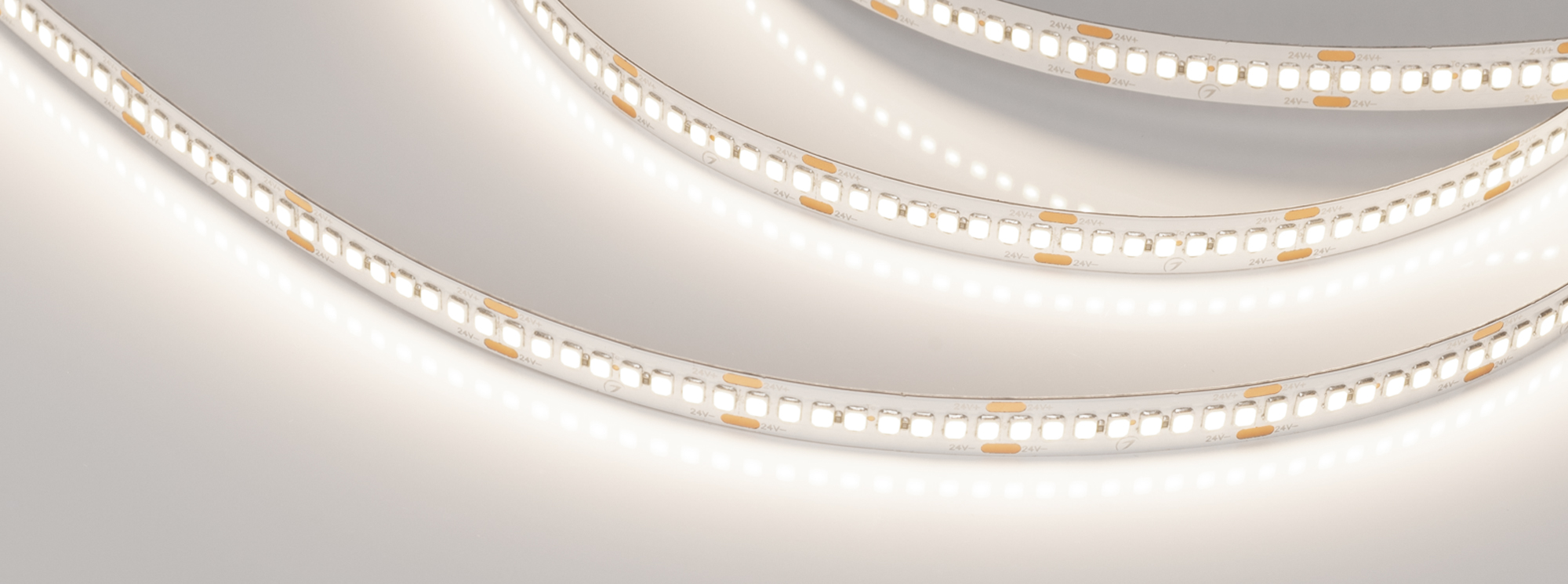 Высокоэффективная светодиодная лента RT серии A240, эффективность 150 лм/Вт. Светодиоды SMD 2835, 240 шт/м, дневного цвета свечения (4000K), минимальный отрезок 33.33 мм, 8 светодиодов. Индекс цветопередачи CRI>85. Предназначена для применения в основном энергоэффективном освещении жилых и офисных помещений, подсветки рекламных конструкций и витрин, декоративной подсветки интерьера, потолочных ниш. Обязательная установка на профиль.