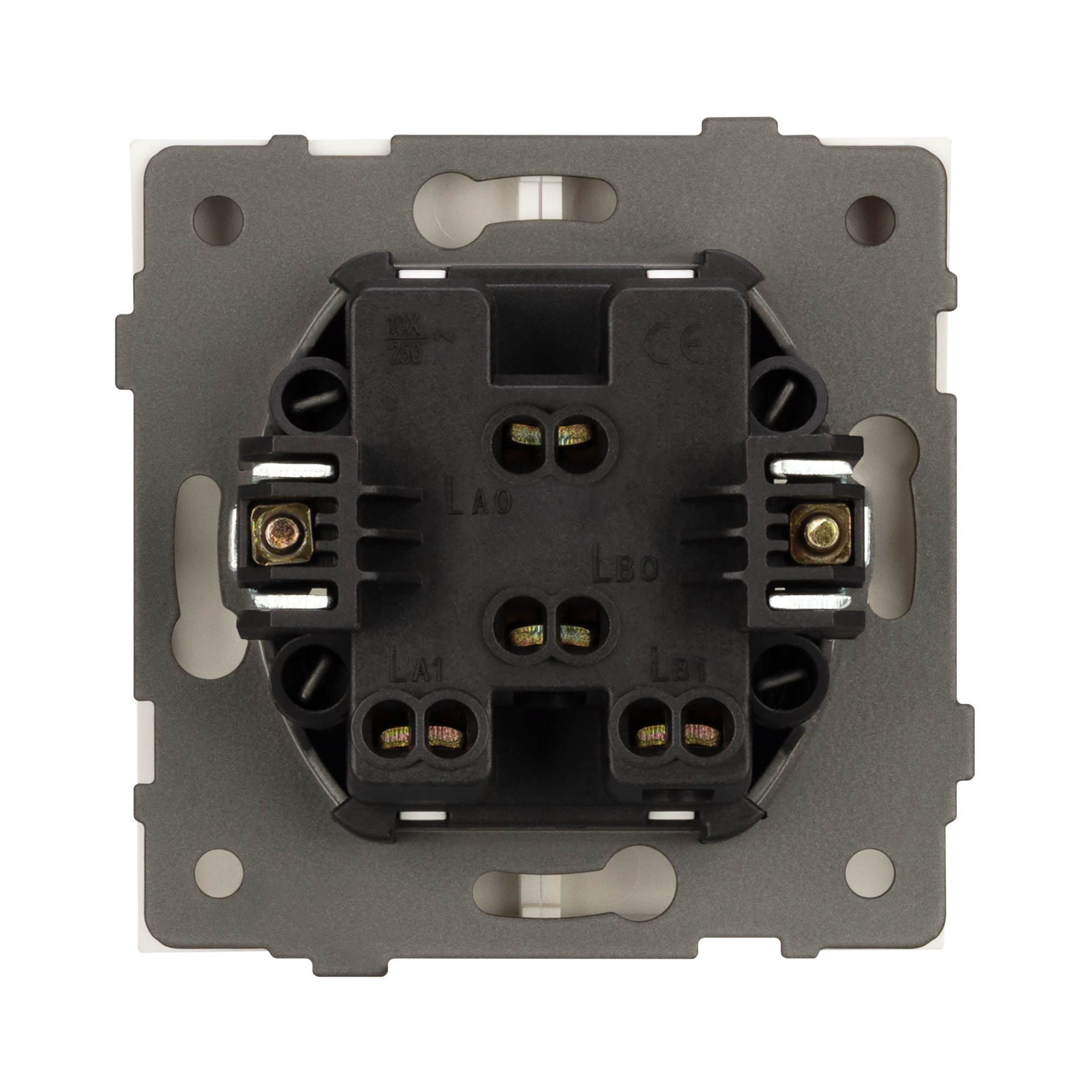 Механизм выключателя света совместим с рамками серии TENDO, создает утонченный минималистичный вид. Скрытый тип монтажа позволяет гармонично встроить в интерьер любого современного дизайн-проекта. Видимая часть механизма выполнена из высококачественного пластика белого цвета и имеет Soft-Touch покрытие, что придает изделию приятные тактильные ощущения и стильный внешний вид. Контактная часть присоединяется при помощи винтовых зажимов, позволяя надежно подсоединить механизм выключателя к питающим элементам. А усиленные распорные лапки двойного захвата надежно фиксируют механизм в установочном подрозетнике круглого сечения диаметром 60мм. Суппорт окрашен порошковой краской и выполнен из металла толщиной 1,5мм, что обеспечивает безопасность и уверенность в установке. На каждой стороне суппорта размещены фиксирующие элементы, позволяющие комбинировать механизмы в системы до 5 шт как горизонтально, так и вертикально.