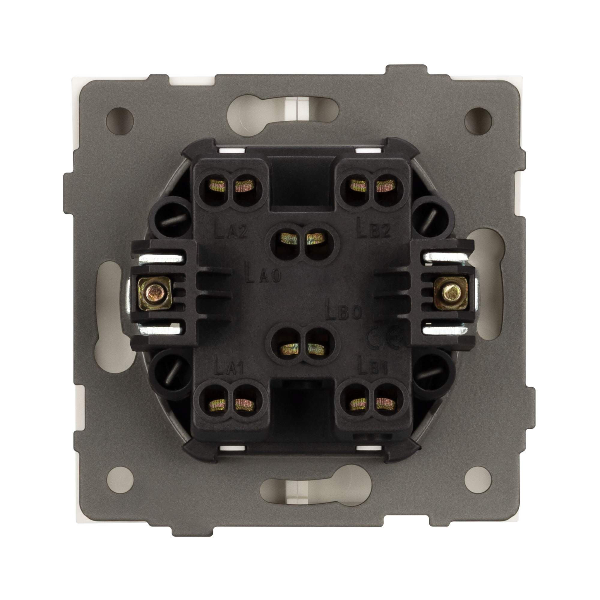 Механизм выключателя света совместим с рамками серии TENDO, создает утонченный минималистичный вид. Скрытый тип монтажа позволяет гармонично встроить в интерьер любого современного дизайн-проекта. Видимая часть механизма выполнена из высококачественного пластика золотого цвета и имеет Soft-Touch покрытие, что придает изделию приятные тактильные ощущения и стильный внешний вид. Контактная часть присоединяется при помощи винтовых зажимов, позволяя надежно подсоединить механизм выключателя к питающим элементам. А усиленные распорные лапки двойного захвата надежно фиксируют механизм в установочном подрозетнике круглого сечения диаметром 60мм. Суппорт окрашен порошковой краской и выполнен из металла толщиной 1,5мм, что обеспечивает безопасность и уверенность в установке. На каждой стороне суппорта размещены фиксирующие элементы, позволяющие комбинировать механизмы в системы до 5 шт как горизонтально, так и вертикально.
