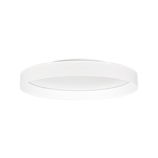 Светодиодный светильник с изменяемой цветовой температурой. Мощность 30 Вт, св. поток 2170-2400 лм, 80-95 лм/Вт, теплый 2700 K, теплый 3300 K, дневной 4000K (переключается), CRI>92, угол 80°, напряжение питания 230 В. Белый круглый корпус из алюминия, матовый призматический экран PC, степень защиты IP20. Размер: Ø 350х70 мм. Размер световой части: Ø 350х39 мм, размер основания: Ø 196х31мм. Монтаж накладной. Драйвер 26-42 В, 700 мА, пульсация <0,3%. Диммирование TRIAC.